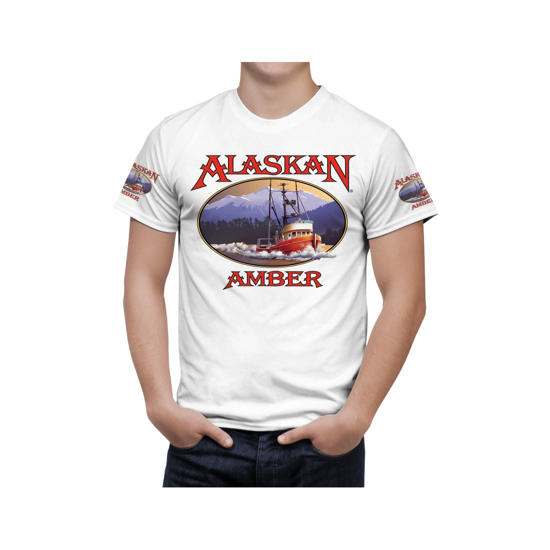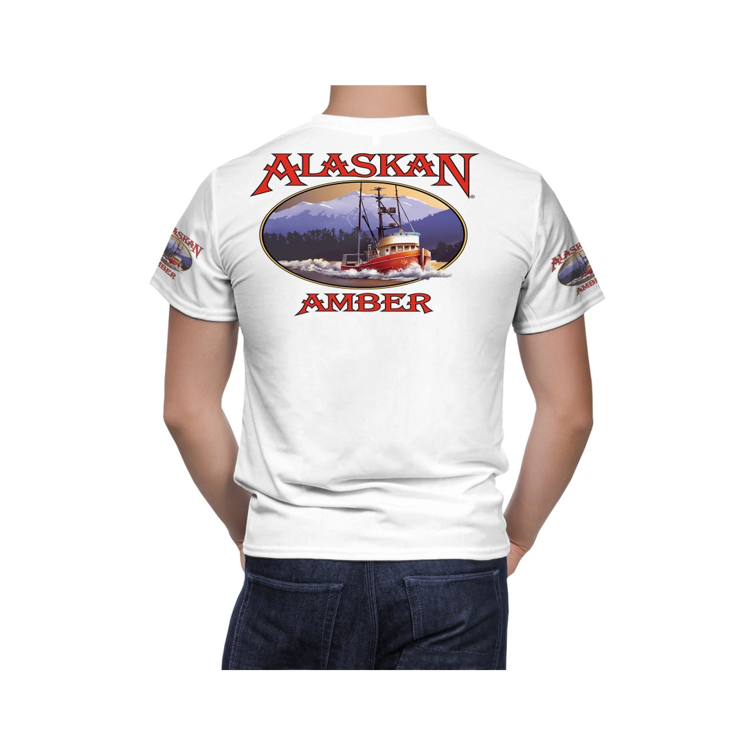 This is a Alaskan Amber Beer White Unisex hand made t-shirt.