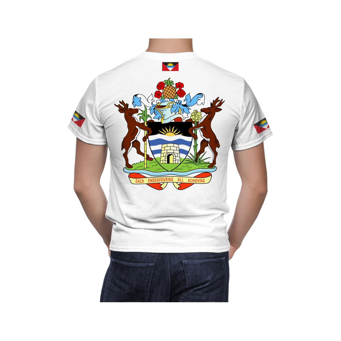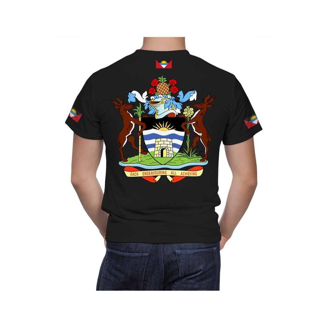 The `Antigua and Barbuda Coat Of Arms T-Shirt` is featuring multicolour, cotton blend, crew neck and short sleeves. The brand logo together with the unique print on the `Antigua and Barbuda Coat Of Arms T-Shirt` is instantly recognizable making you easily noticeable. We have specially designed this t-shirt for the fans of this brand.