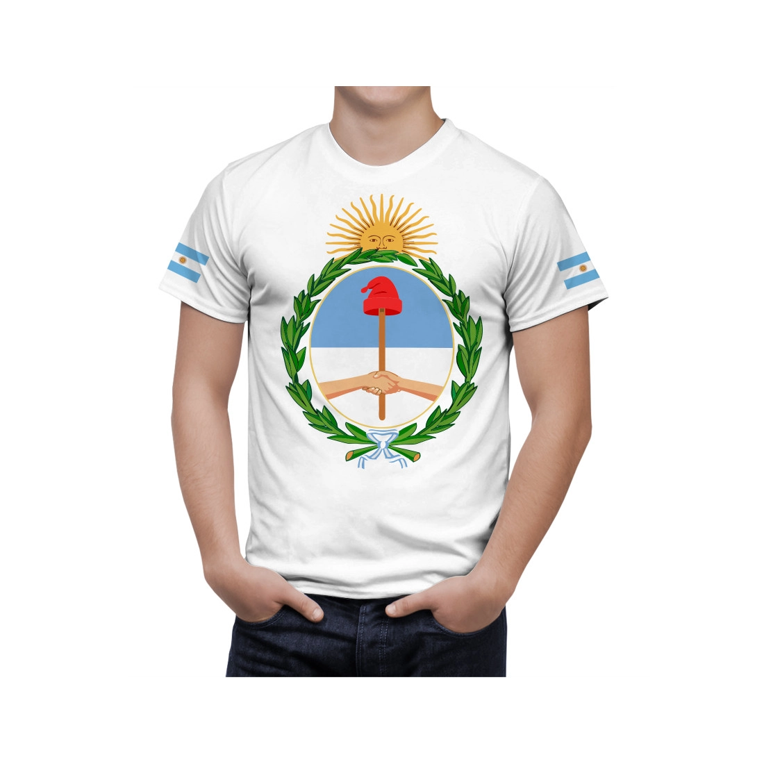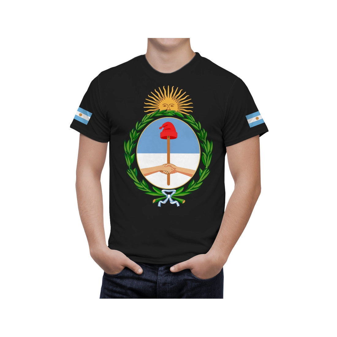 The `Argentina Coat Of Arms T-Shirt` is featuring multicolour, cotton blend, crew neck and short sleeves. The brand logo together with the unique print on the `Argentina Coat Of Arms T-Shirt` is instantly recognizable making you easily noticeable. We have specially designed this t-shirt for the fans of this brand.