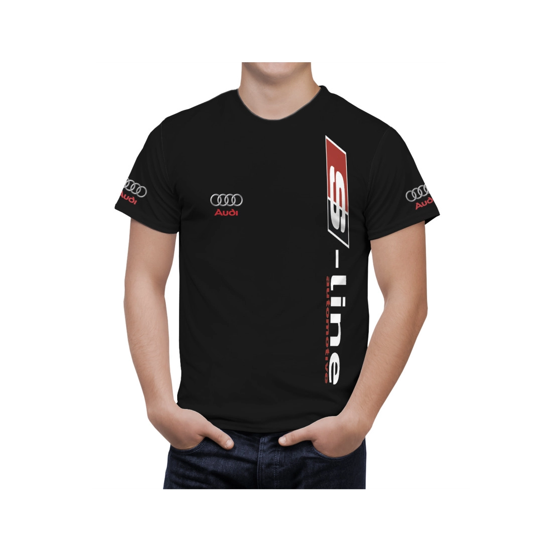 This is a Audi Black hand made t-shirt.