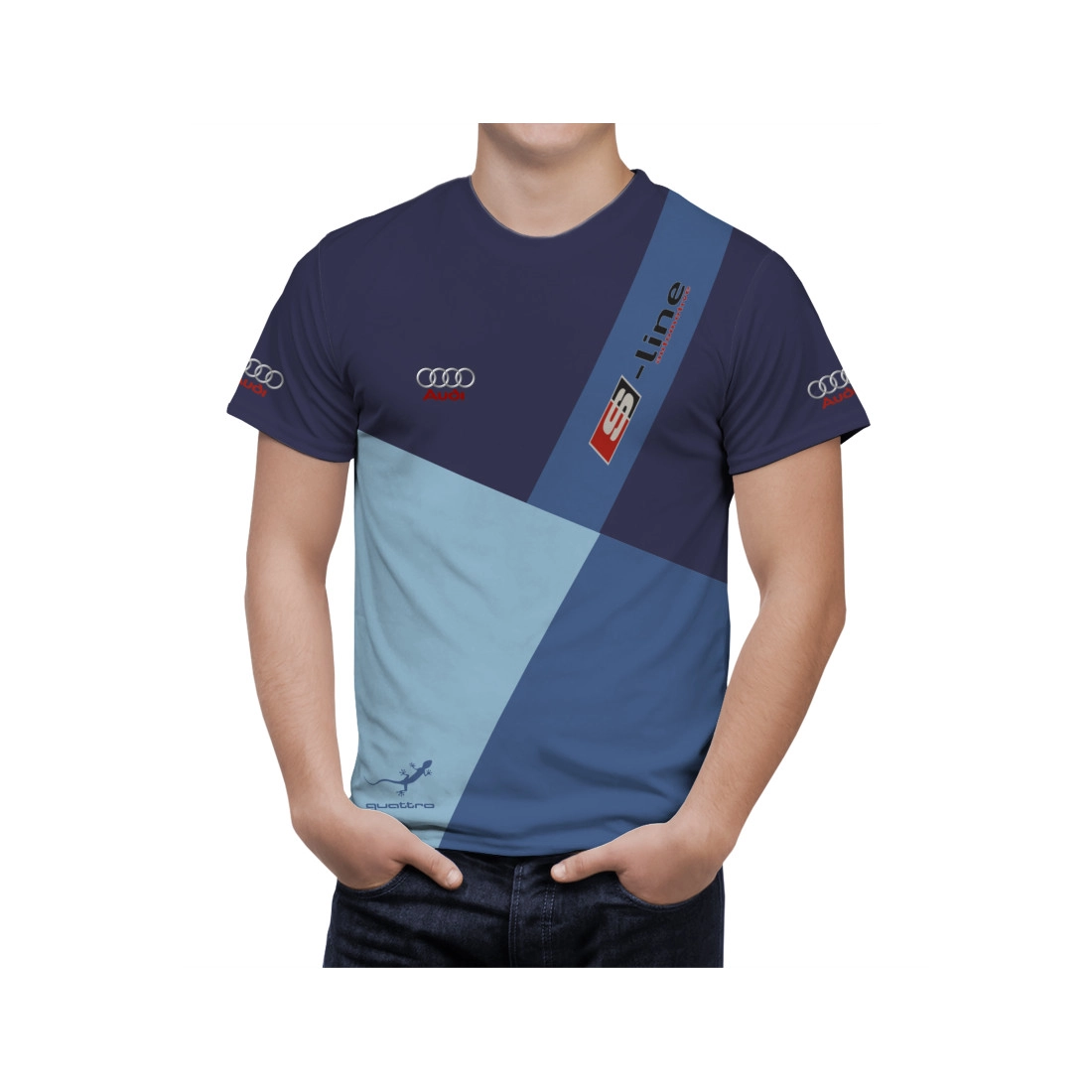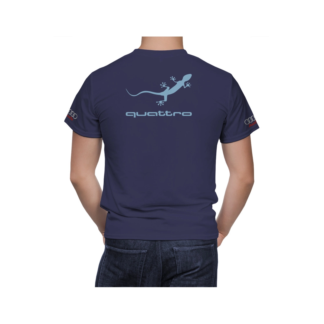 This is a Audi Dark Blue hand made t-shirt.