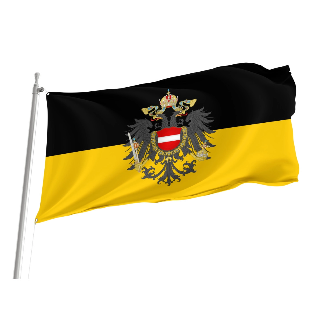 This Austria Empire Flag is made of high quality polyester and has 2 brass grommets that are rust-resistant. This makes them very easy to install and does not require any additional work or special tools. It has double seams and reforced edges for a better resistance.
