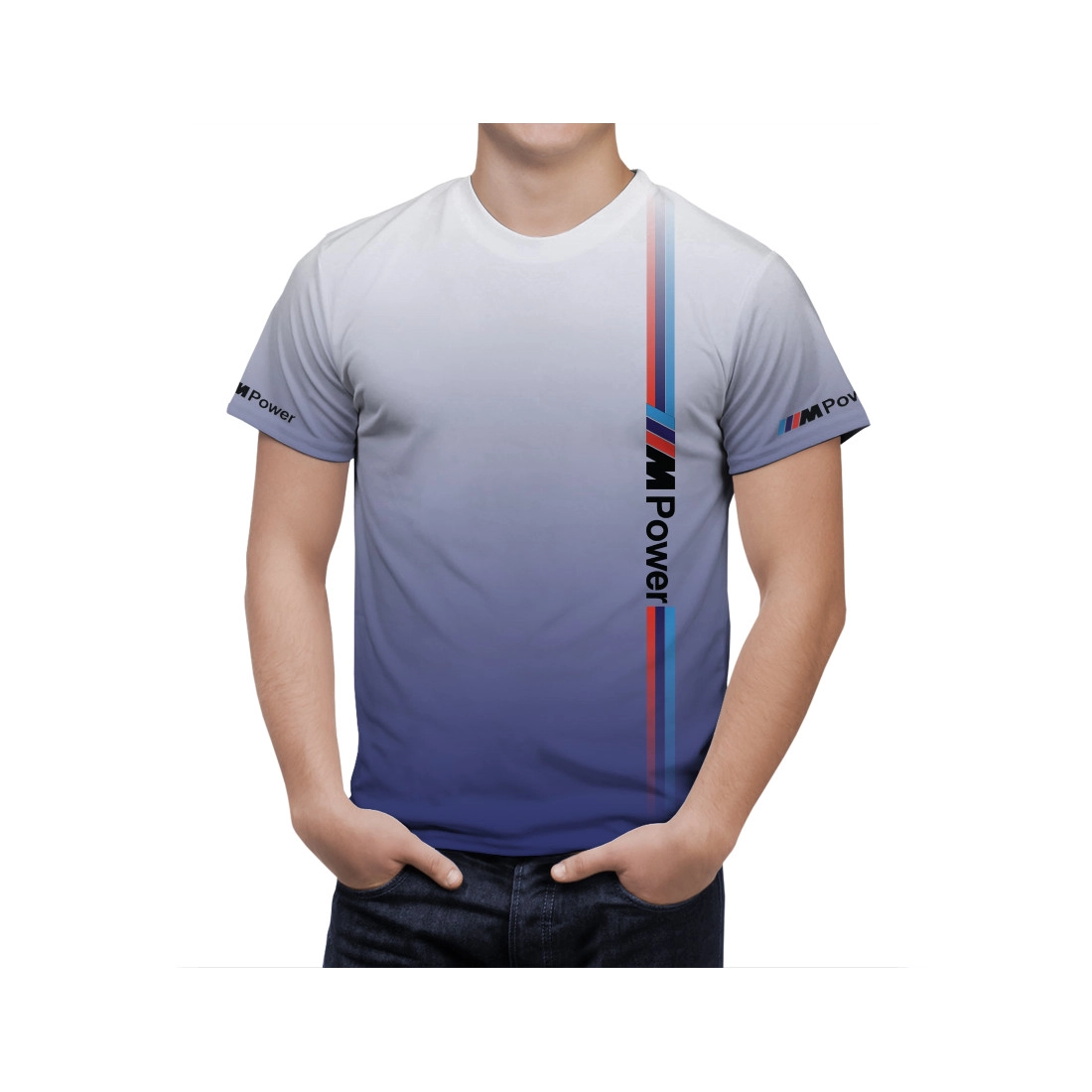 The `BMW Blue gradient T-Shirt` is featuring multicolour, cotton blend, crew neck and short sleeves. The brand logo together with the unique print on the `BMW Blue gradient T-Shirt` is instantly recognizable making you easily noticeable. We have specially designed this t-shirt for the fans of this brand.
