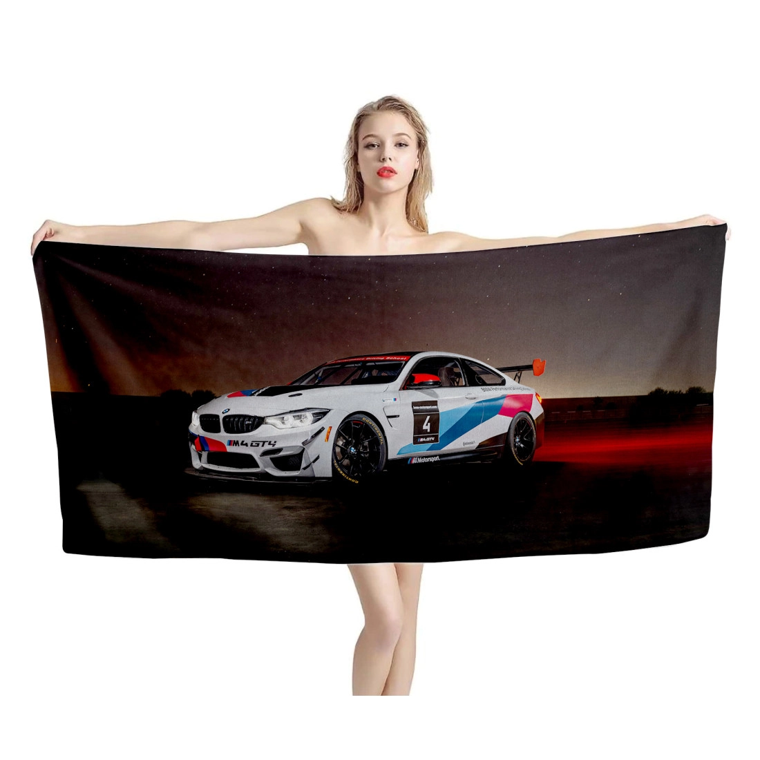Get this unique and adorable BMW M4 GT4 Experience Beach Towel. Printed design is edge-to-edge on fleece face in vibrant full-color with our unique printing process that is durable and won't fade or bleed! Our premium beach towel is printable on a single side only.
