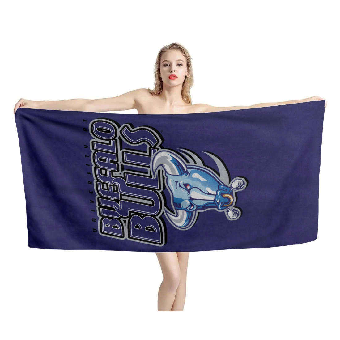 Get this unique and adorable Buffalo Bulls Beach Towel. Printed design is edge-to-edge on fleece face in vibrant full-color with our unique printing process that is durable and won't fade or bleed! Our premium beach towel is printable on a single side only.