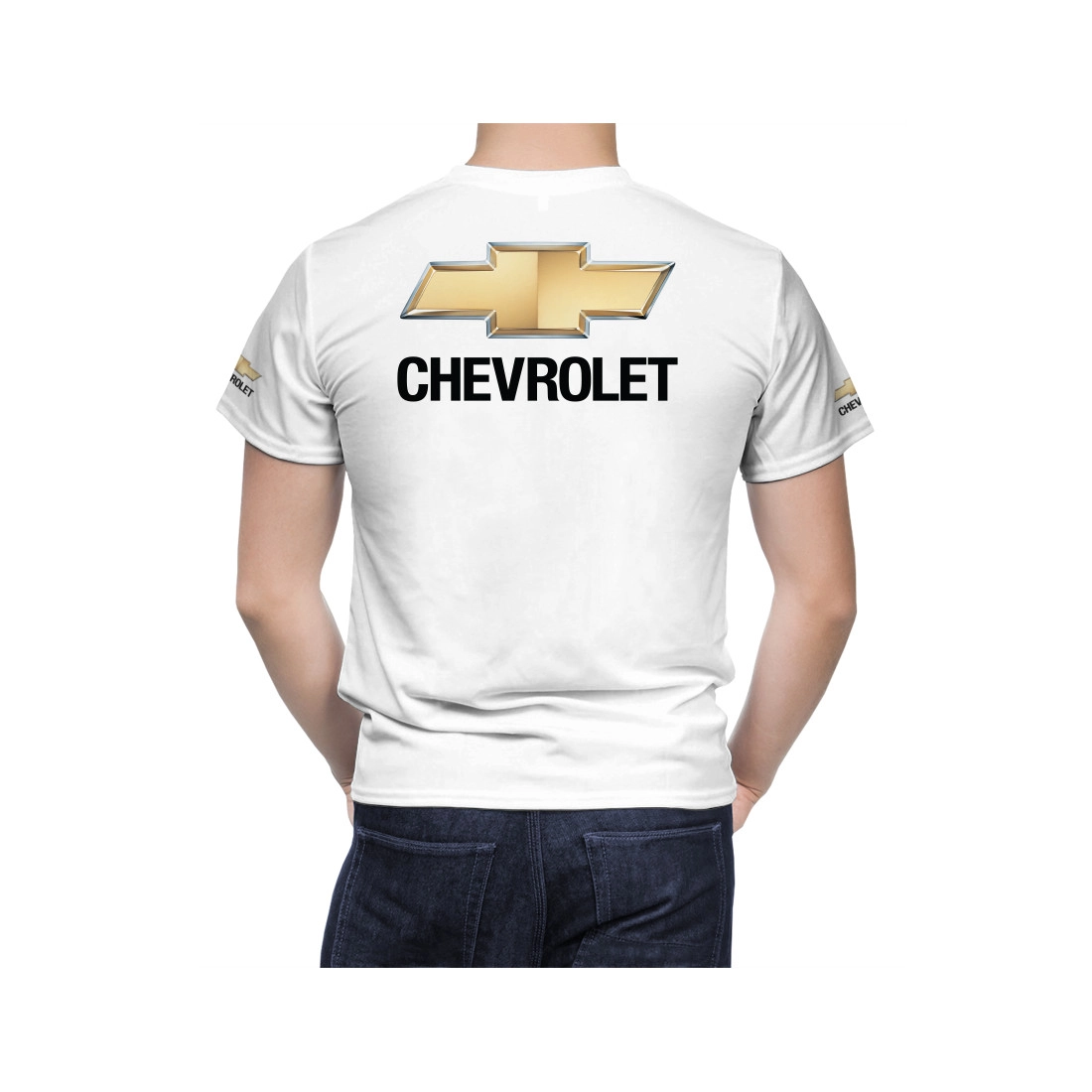 This is a CHEVROLET White hand made t-shirt.