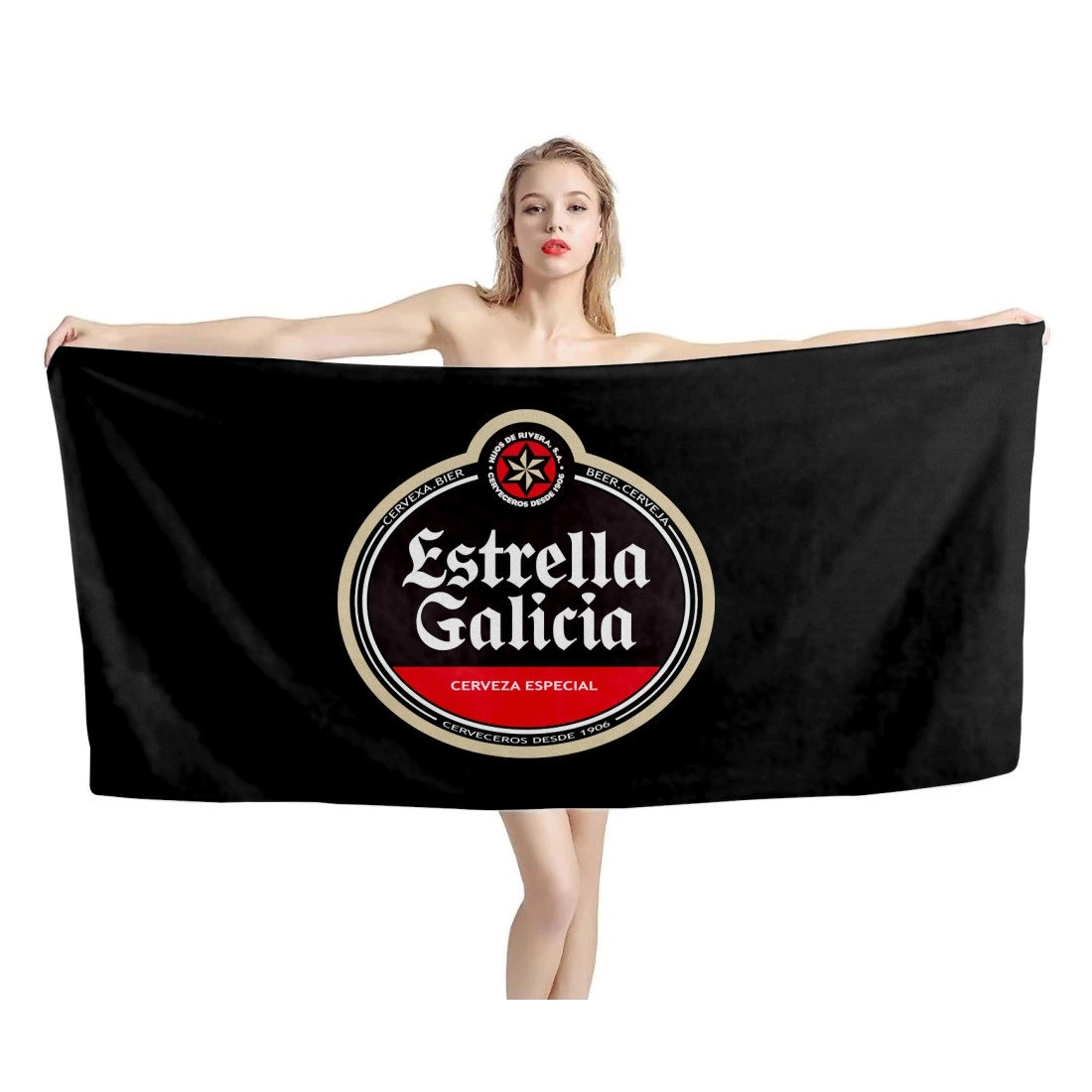 Get this unique and adorable Estrella Galicia Beer Black Beach Towel. Printed design is edge-to-edge on fleece face in vibrant full-color with our unique printing process that is durable and won't fade or bleed! Our premium beach towel is printable on a single side only.