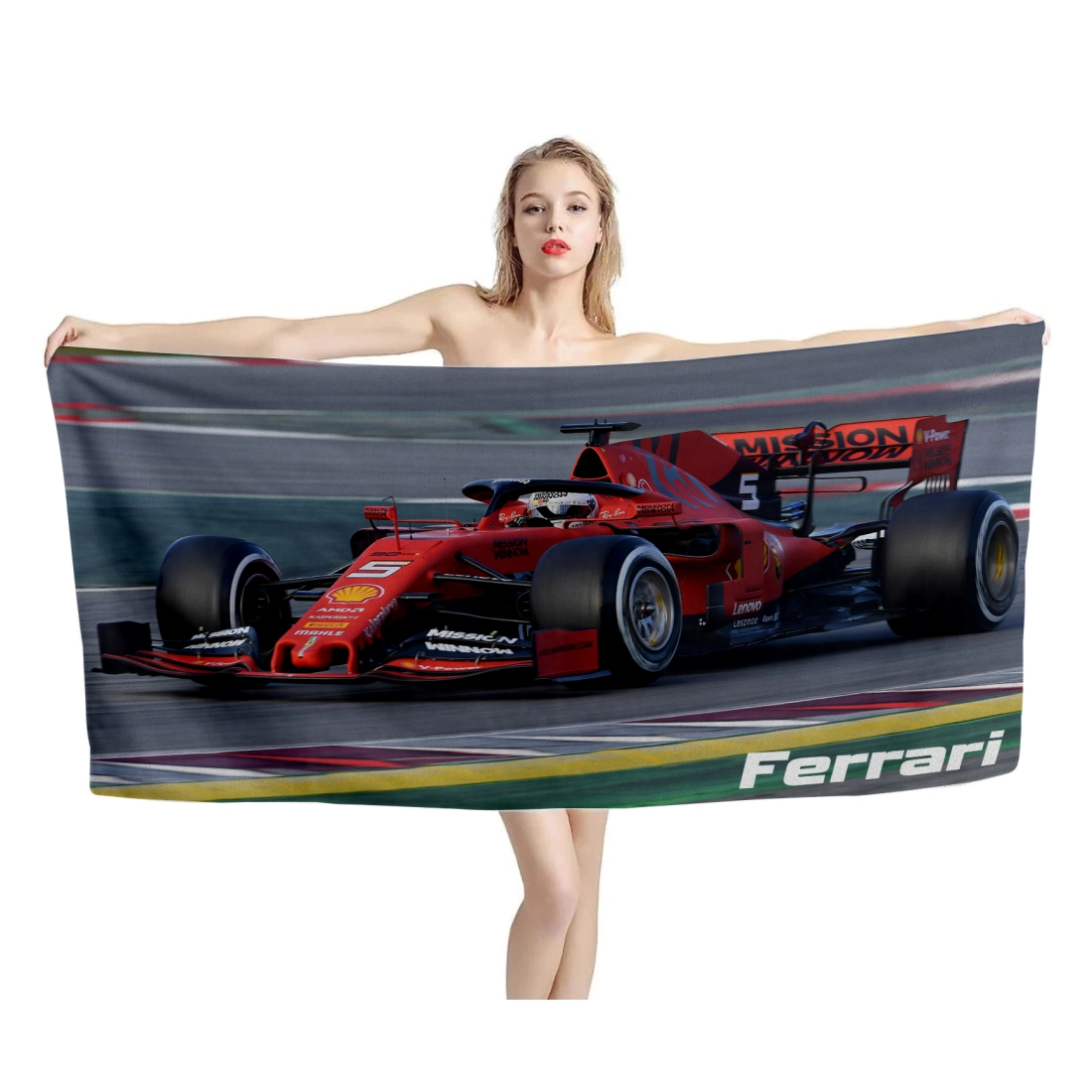 Get this unique and adorable Ferrari SF90 Formula1 Beach Towel. Printed design is edge-to-edge on fleece face in vibrant full-color with our unique printing process that is durable and won't fade or bleed! Our premium beach towel is printable on a single side only.