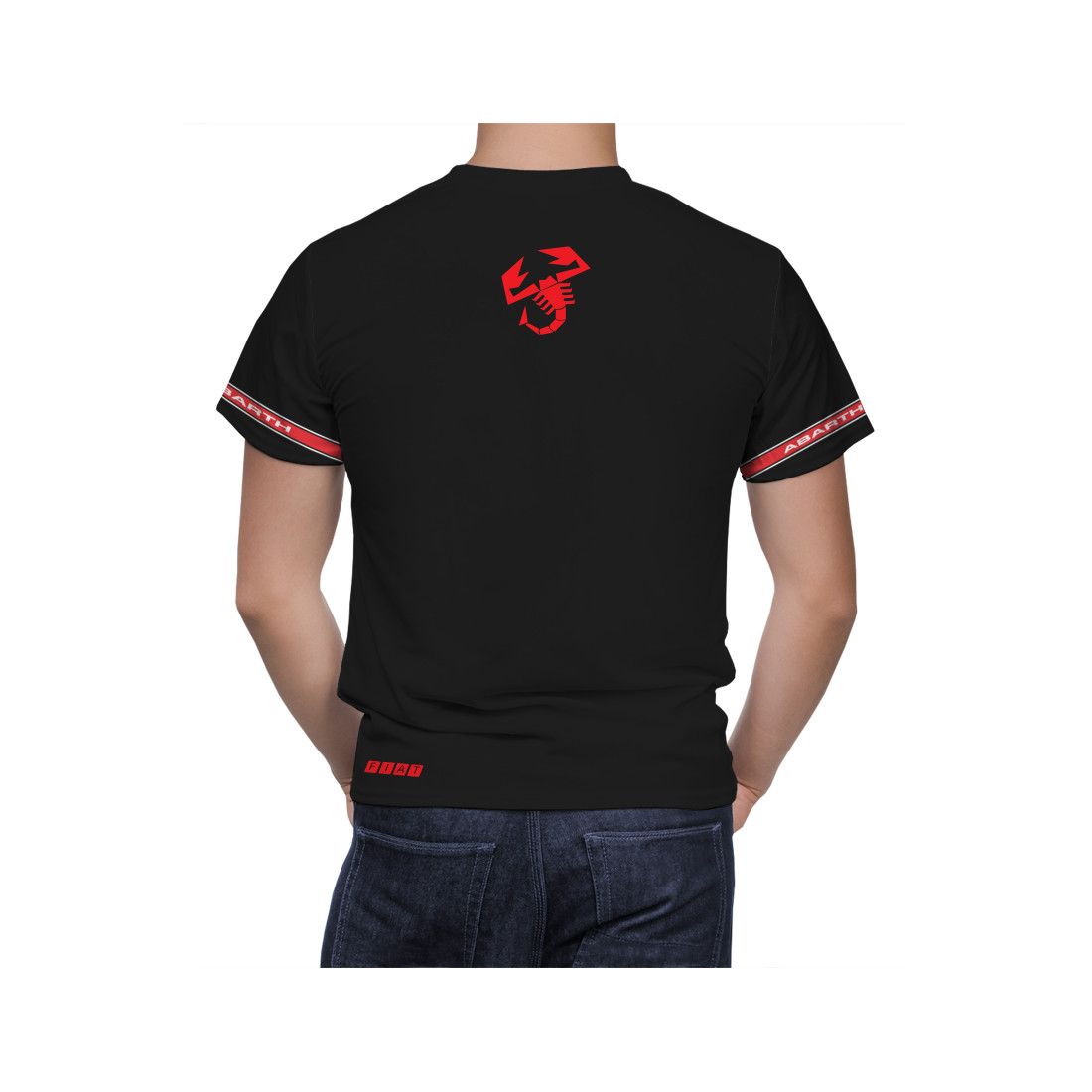 Hier ist ein handgefertigtes Fiat Abarth Schwarz Rot Umbro T-Shirt.