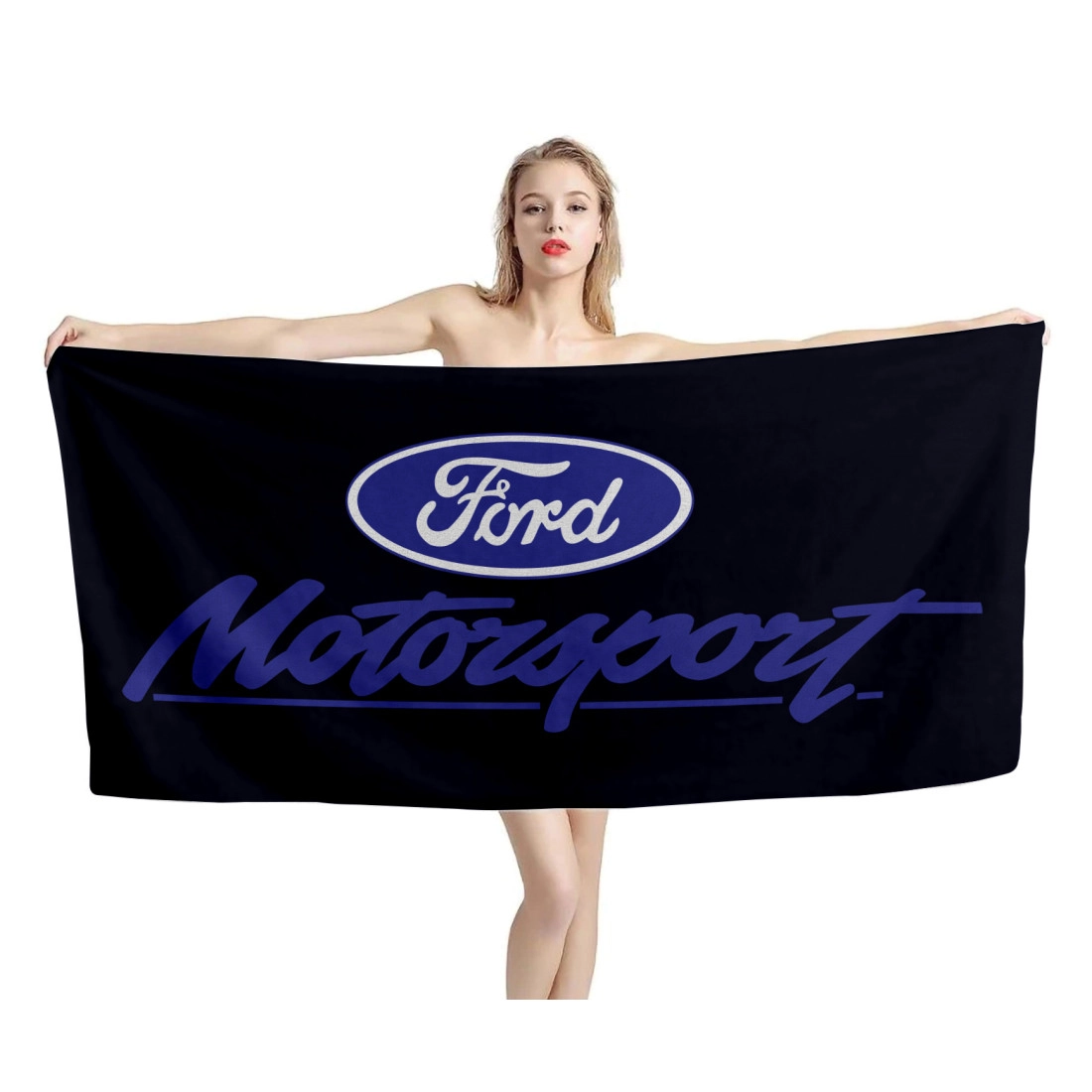 Get this unique and adorable Ford Motorsport Black Beach Towel. Printed design is edge-to-edge on fleece face in vibrant full-color with our unique printing process that is durable and won't fade or bleed! Our premium beach towel is printable on a single side only.