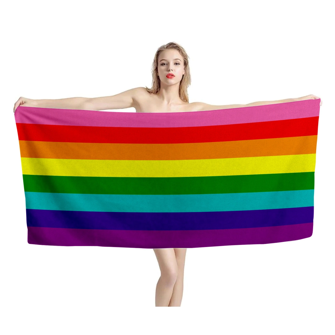 Get this unique and adorable Gilbert Baker 8-Stripe Beach Towel. Printed design is edge-to-edge on fleece face in vibrant full-color with our unique printing process that is durable and won't fade or bleed! Our premium beach towel is printable on a single side only.