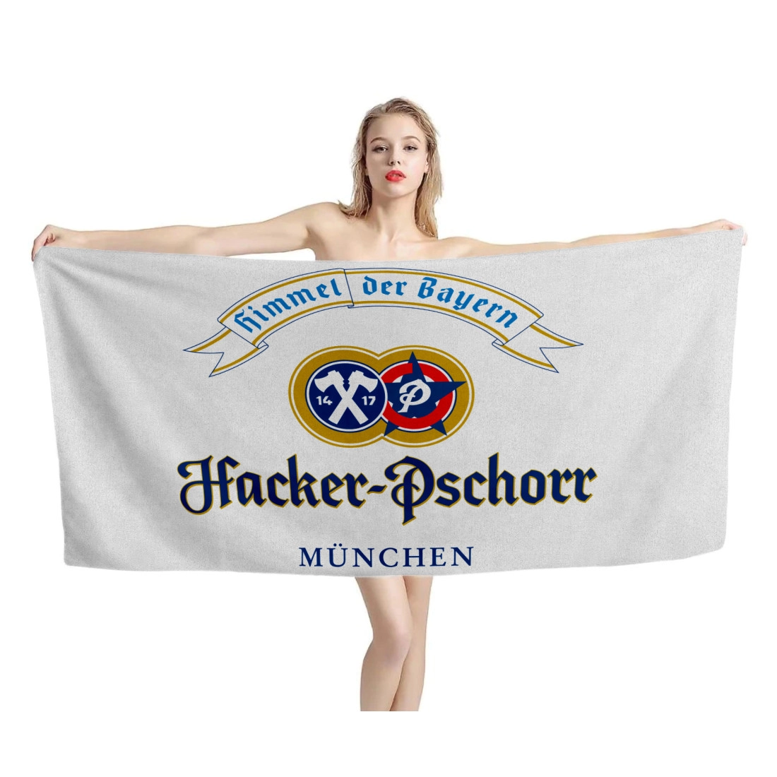 Get this unique and adorable Hacker Pschorr himmel der Bayern Beer White Beach Towel. Printed design is edge-to-edge on fleece face in vibrant full-color with our unique printing process that is durable and won't fade or bleed! Our premium beach towel is printable on a single side only.