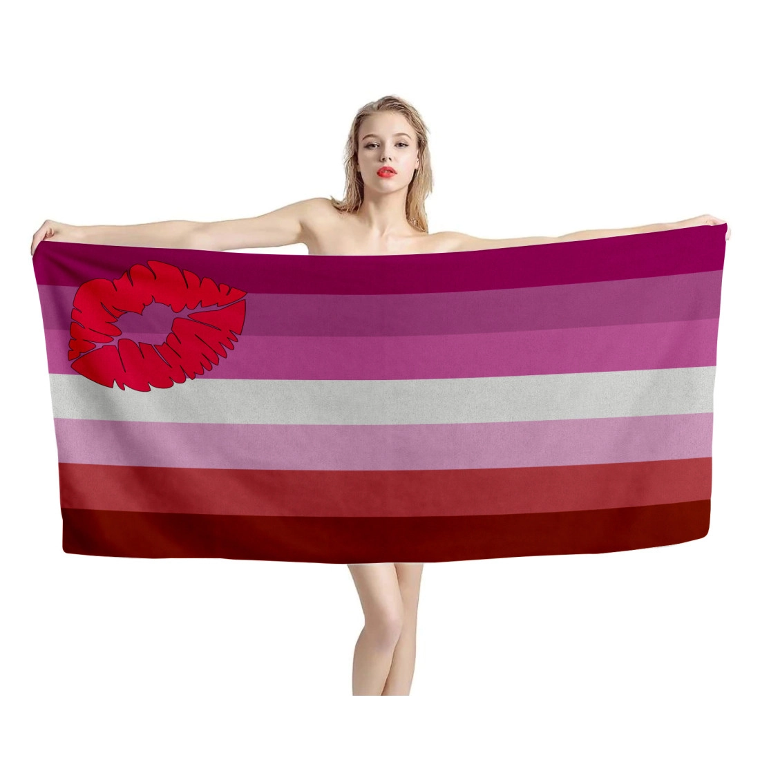 Get this unique and adorable Lipstick Lesbian Beach Towel. Printed design is edge-to-edge on fleece face in vibrant full-color with our unique printing process that is durable and won't fade or bleed! Our premium beach towel is printable on a single side only.
