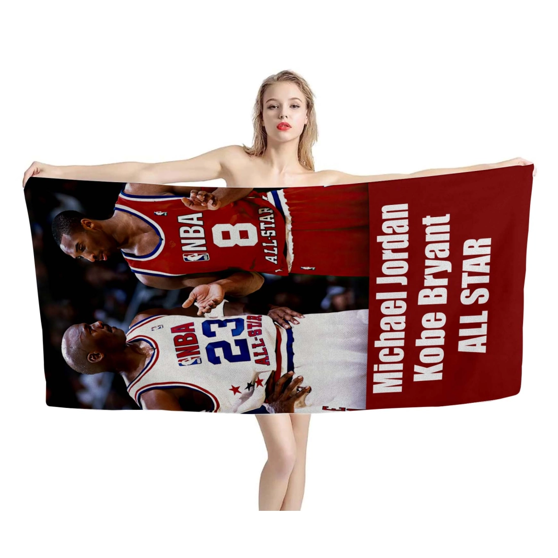 Get this unique and adorable Michael Jordan Kobe Bryant All Star Beach Towel. Printed design is edge-to-edge on fleece face in vibrant full-color with our unique printing process that is durable and won't fade or bleed! Our premium beach towel is printable on a single side only.