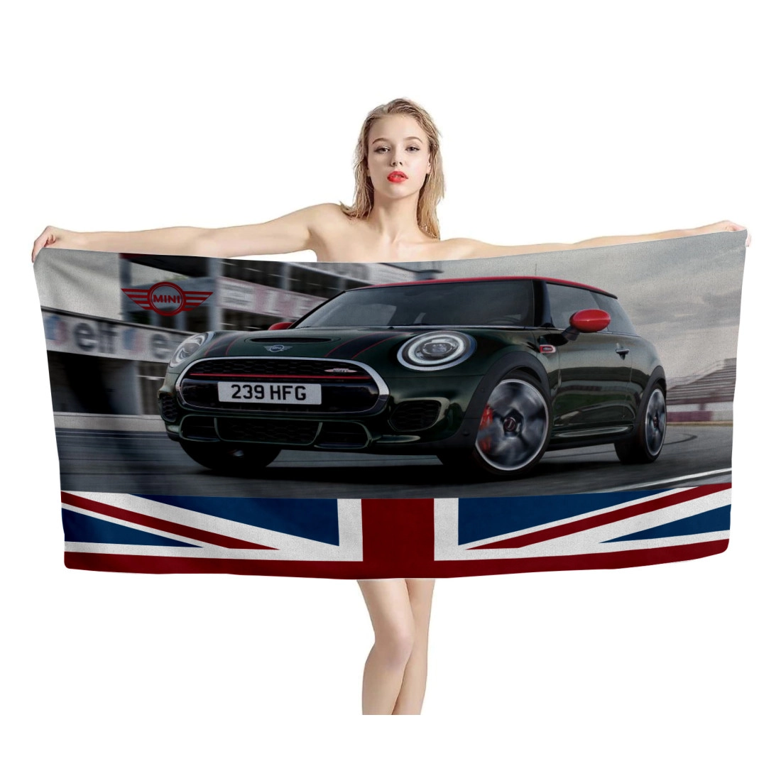 Mini Cooper Black Car Beach Towel