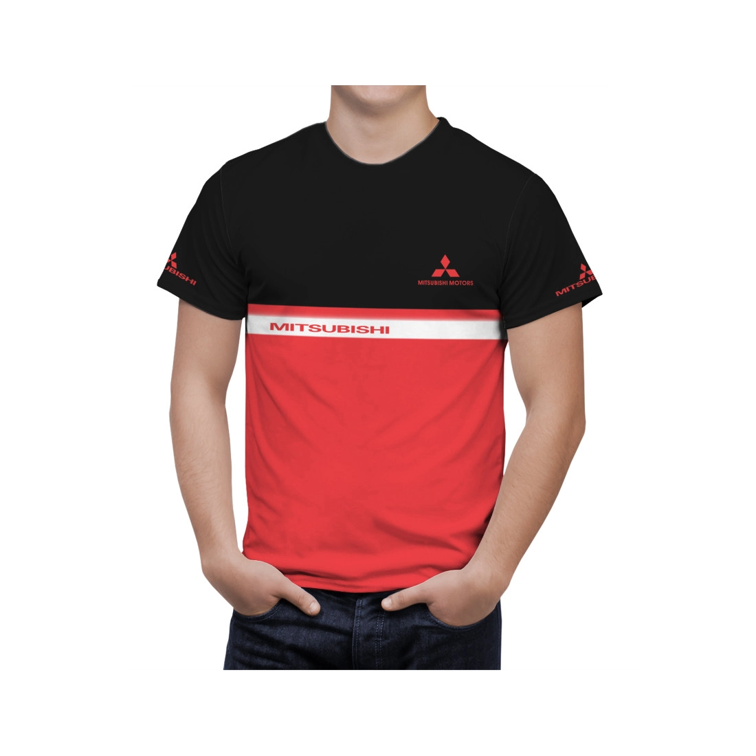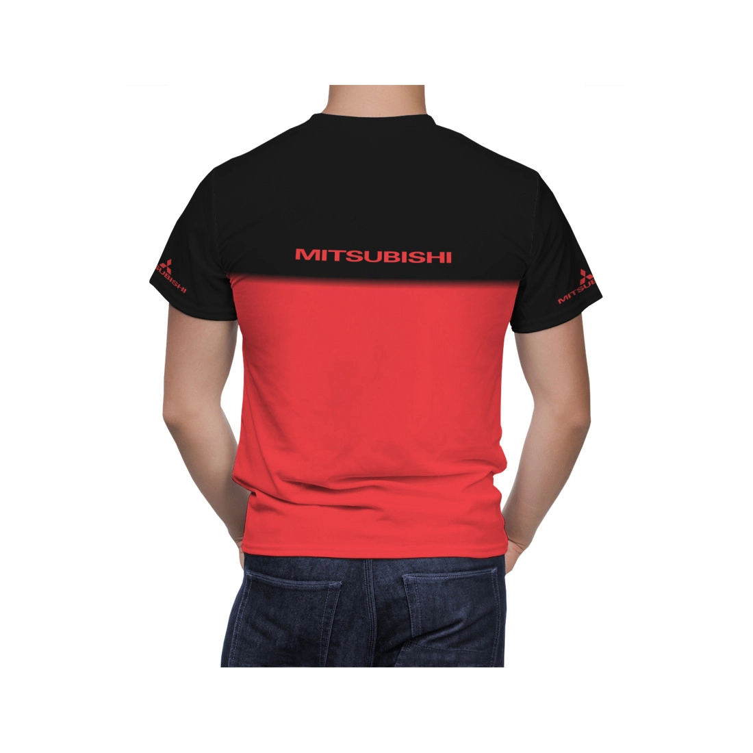 This is a Mitsubishi Red Black hand made t-shirt.
