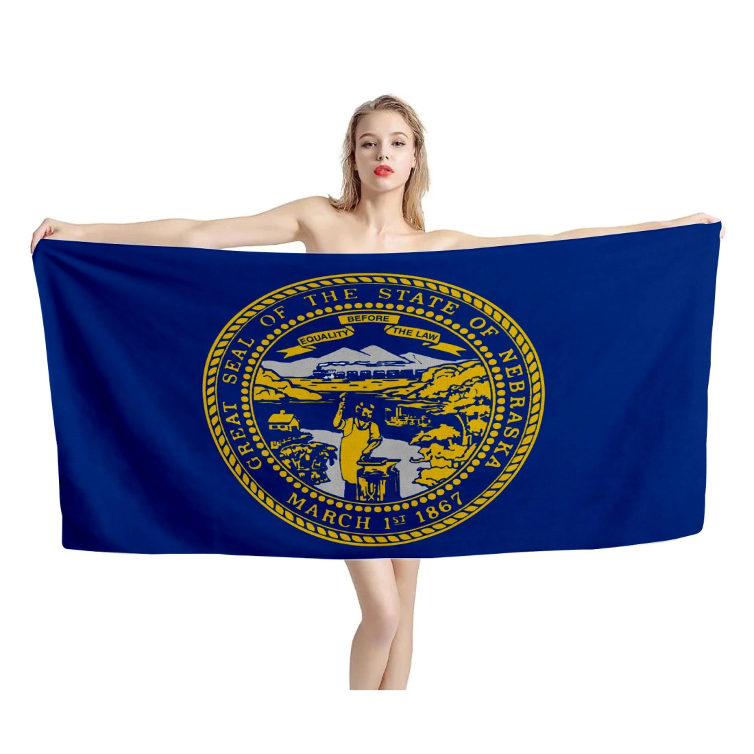 Get this unique and adorable Nebraska, United States, Beach Towel. Printed design is edge-to-edge on fleece face in vibrant full-color with our unique printing process that is durable and won't fade or bleed! Our premium beach towel is printable on a single side only.
