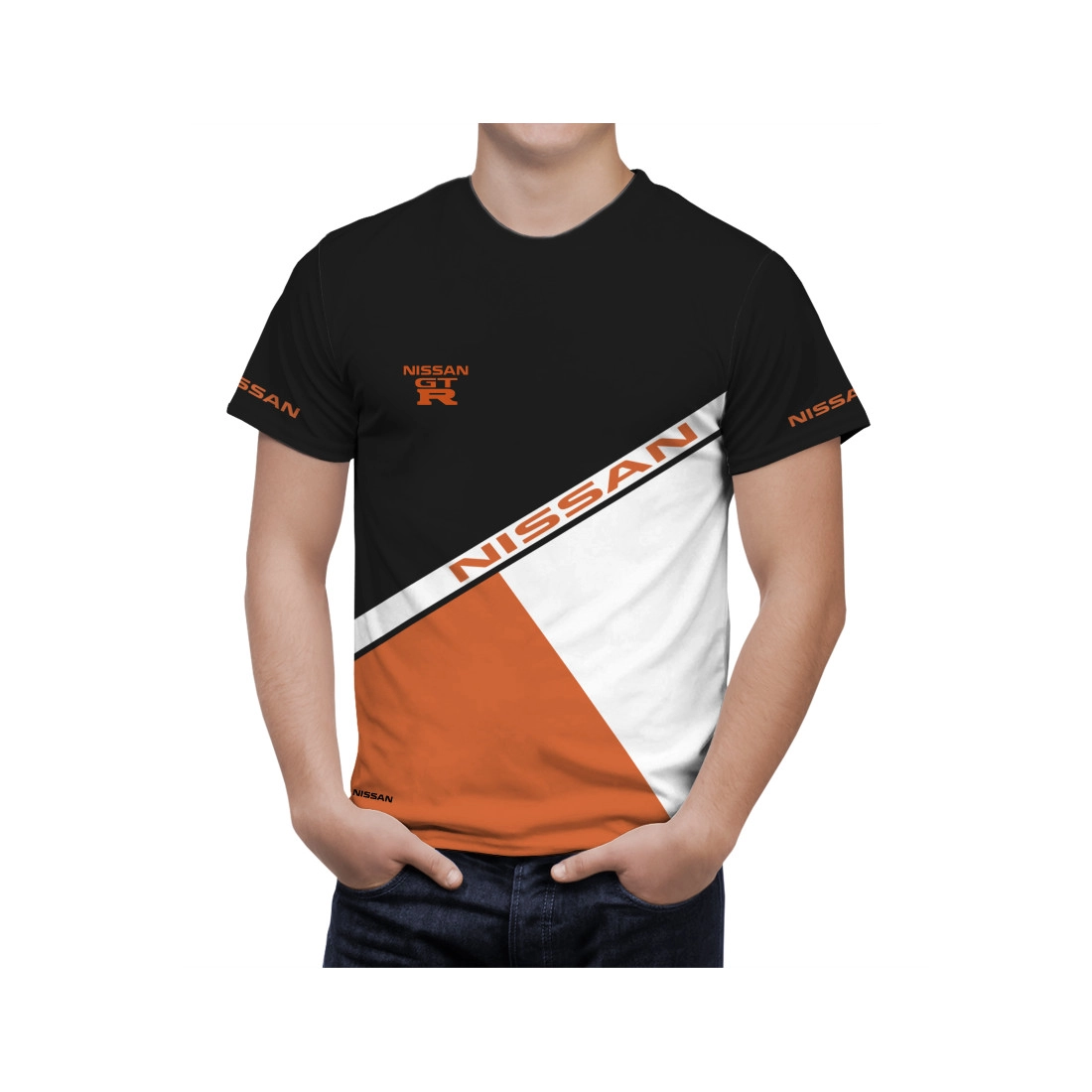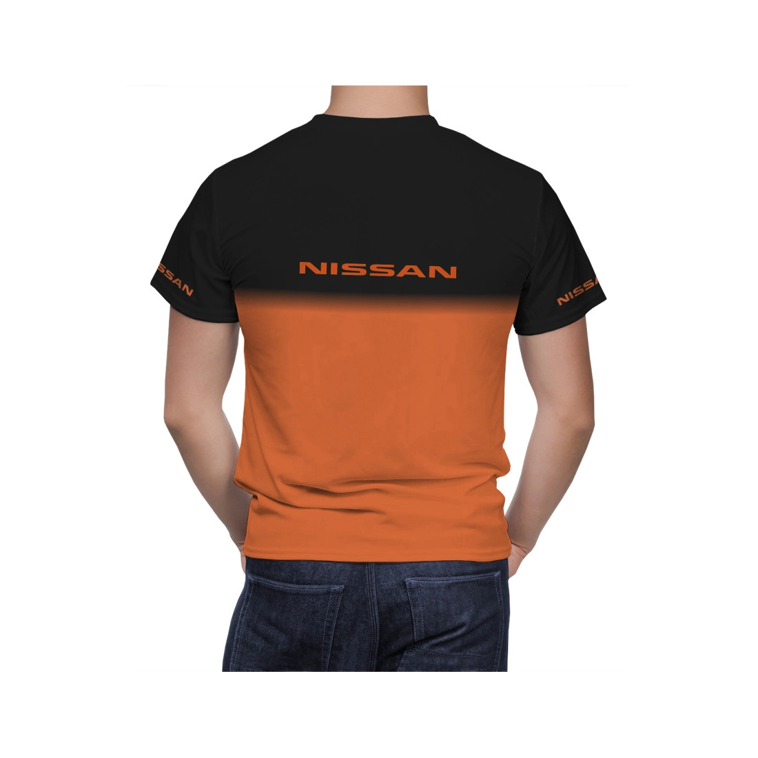 This is a Nissan Black Orange Umbro hand made t-shirt.