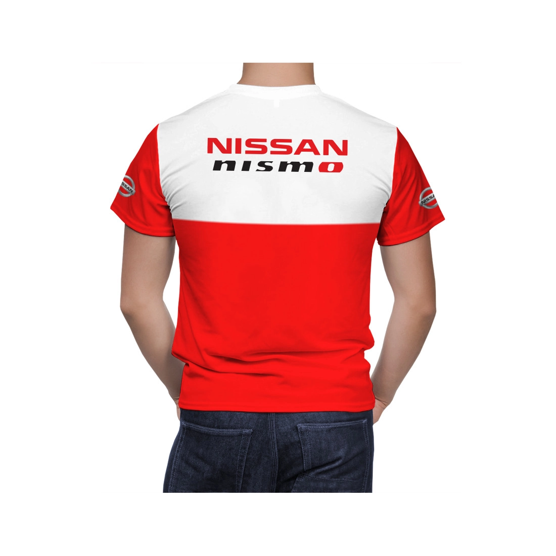 This is a Nissan Nismo Red White hand made t-shirt.