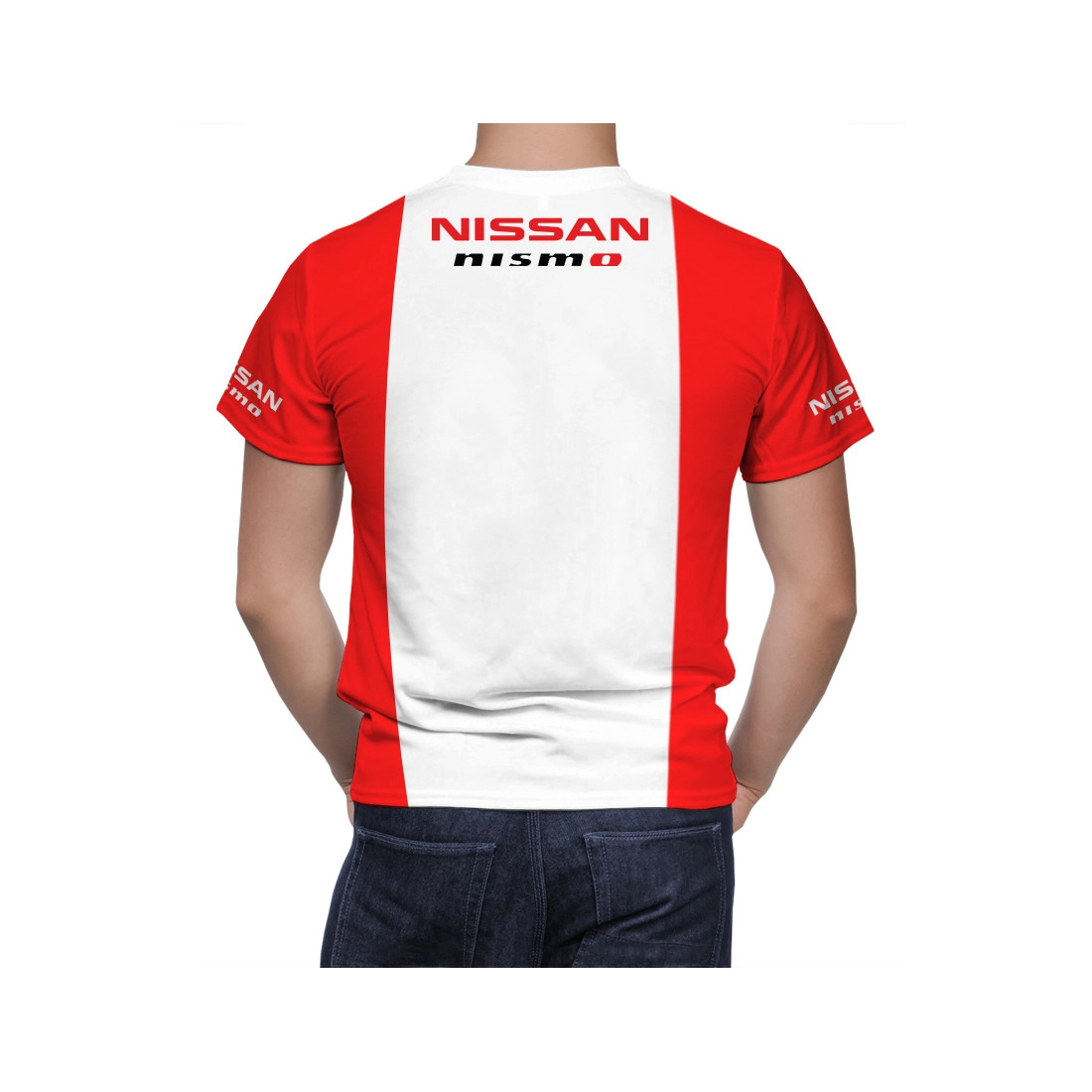 This is a Nissan Red White hand made t-shirt.