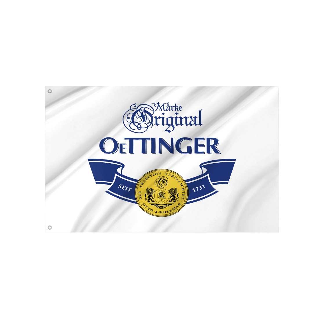 This Oettinger Beer White Flag is made of high quality polyester and has 2 brass grommets that are rust-resistant. This makes them very easy to install and does not require any additional work or special tools. It has double seams and reforced edges for a better resistance.