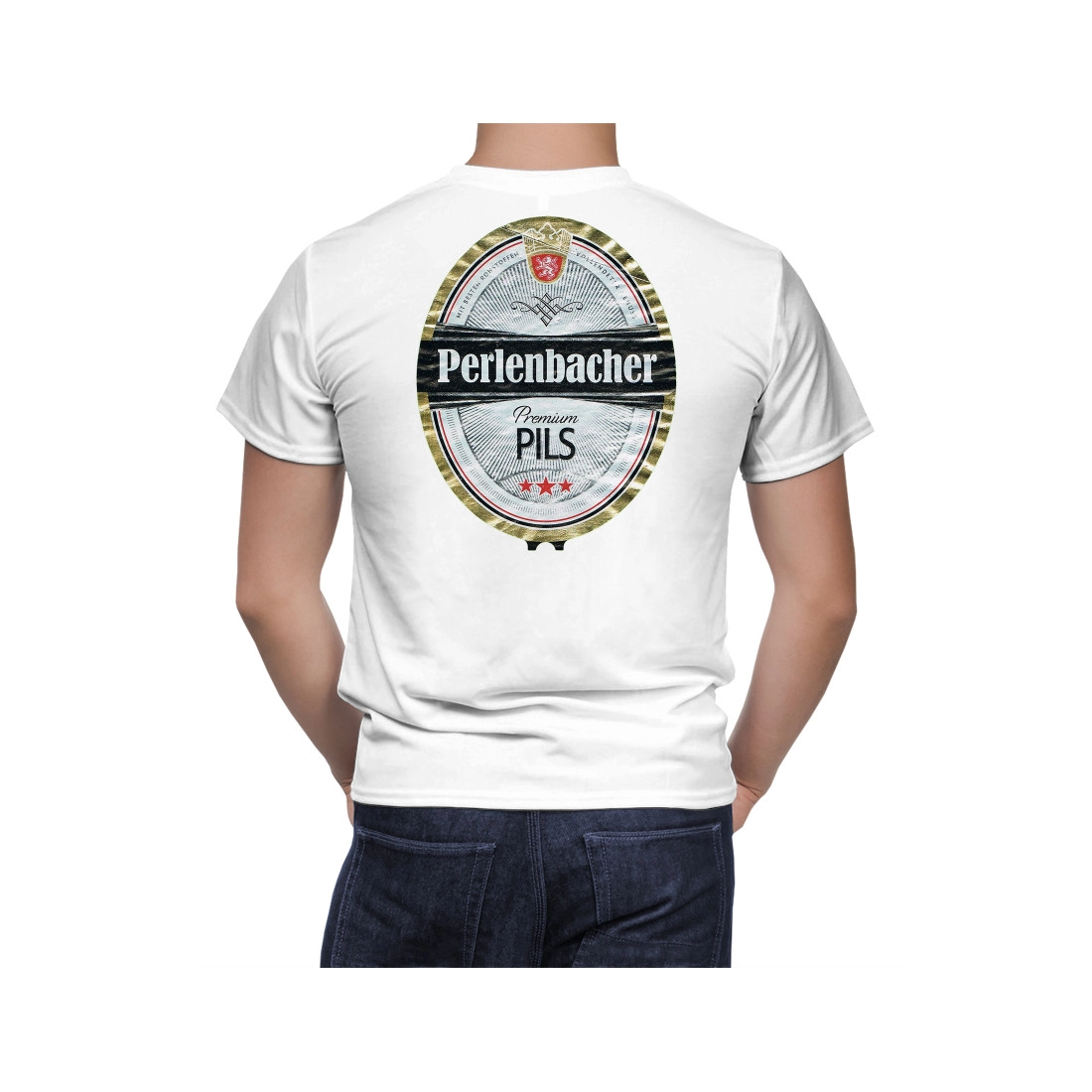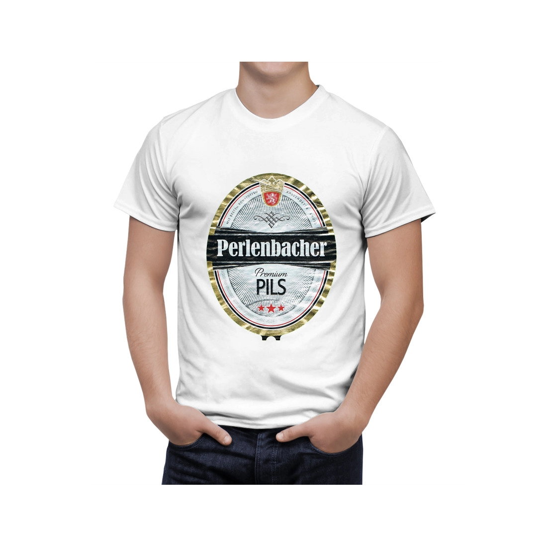 This is a Perlenbacher Premium Pils Beer Unisex hand made t-shirt.