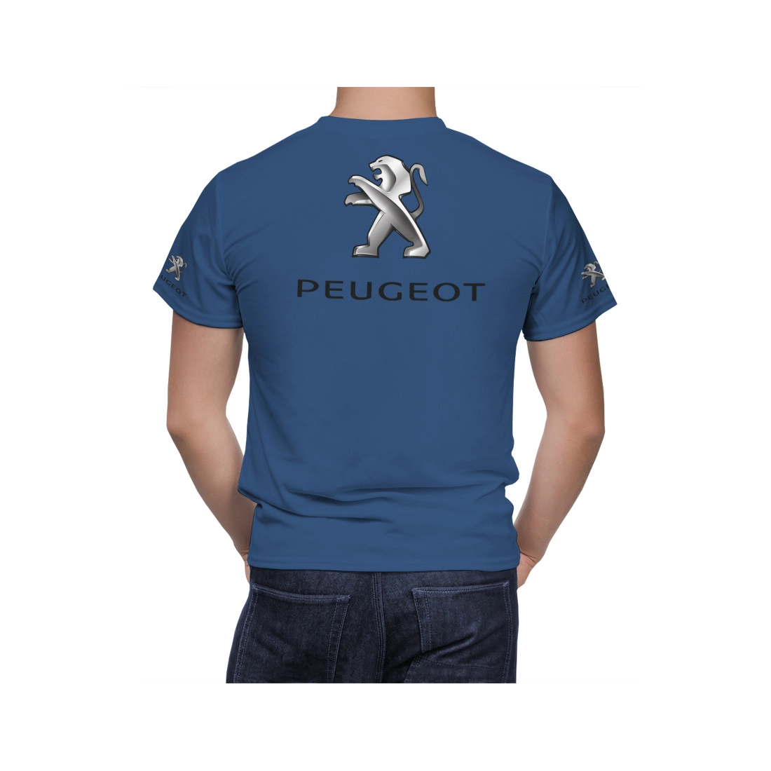 This is a Peugeot Blue hand made t-shirt.