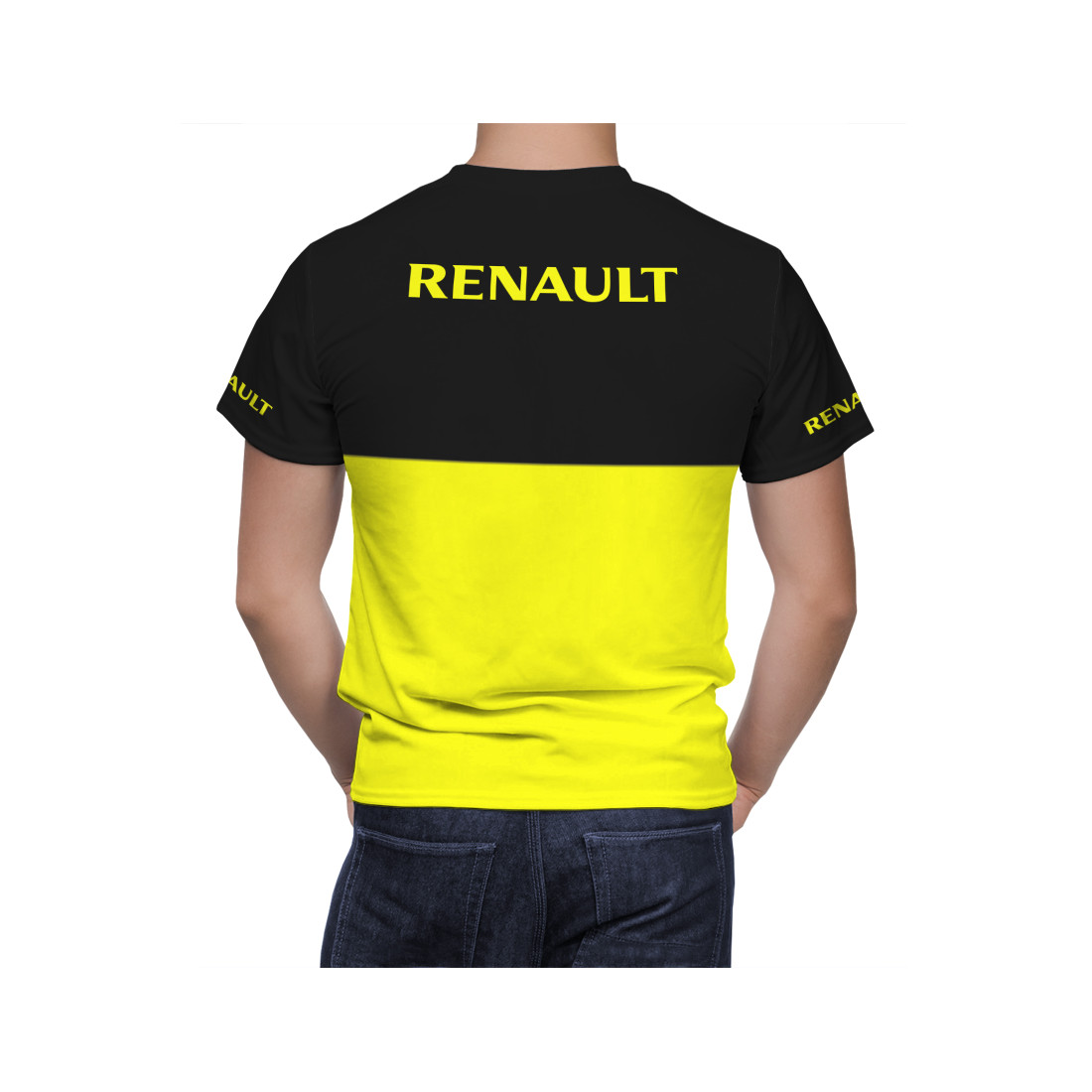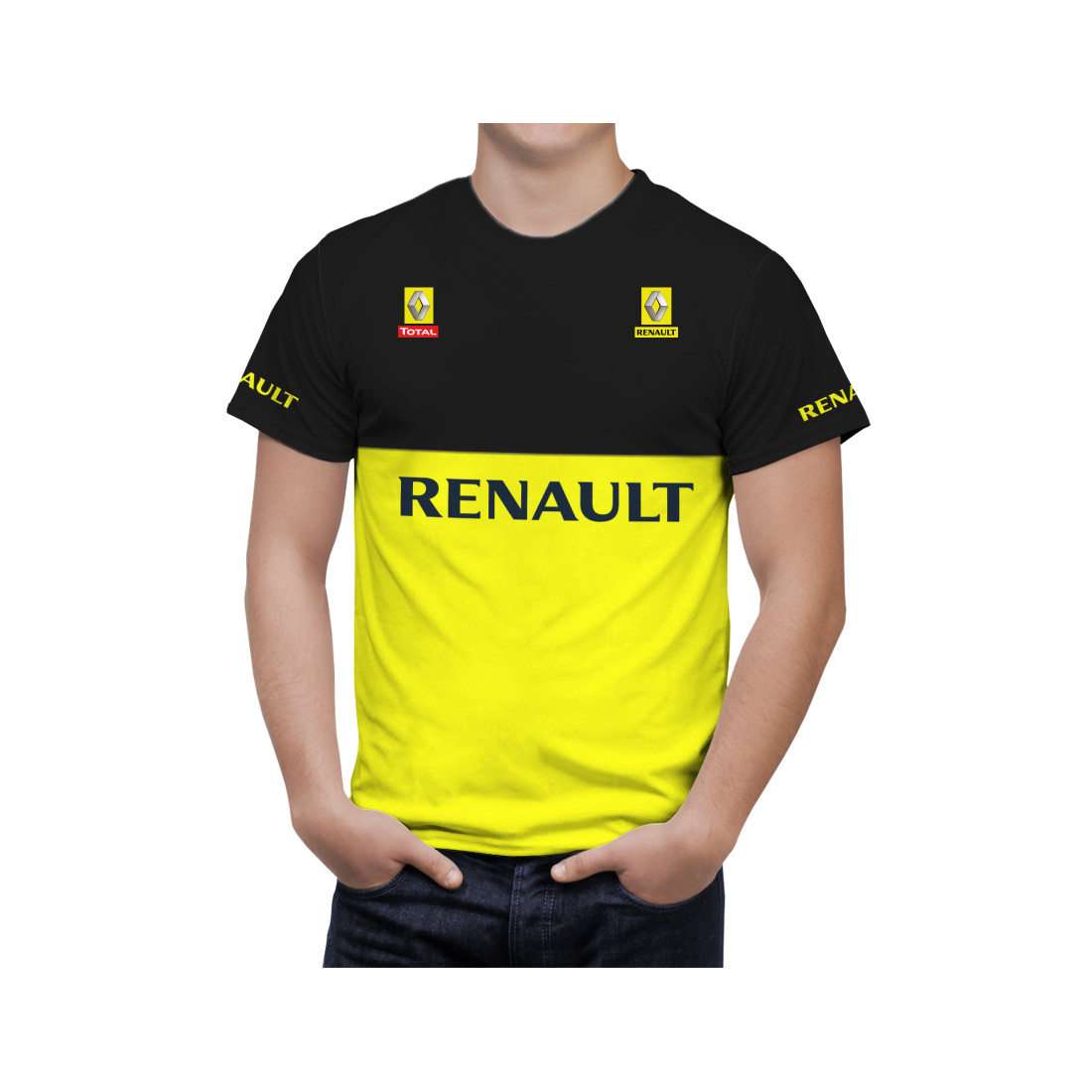 This is a Renault Black Yellow hand made t-shirt.