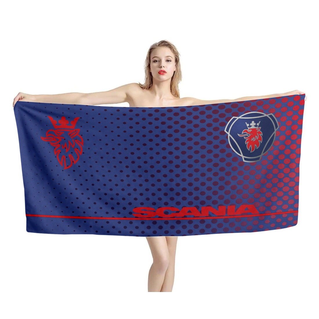 Get this unique and adorable Scania Logo Blue Red Points Beach Towel. Printed design is edge-to-edge on fleece face in vibrant full-color with our unique printing process that is durable and won't fade or bleed! Our premium beach towel is printable on a single side only.