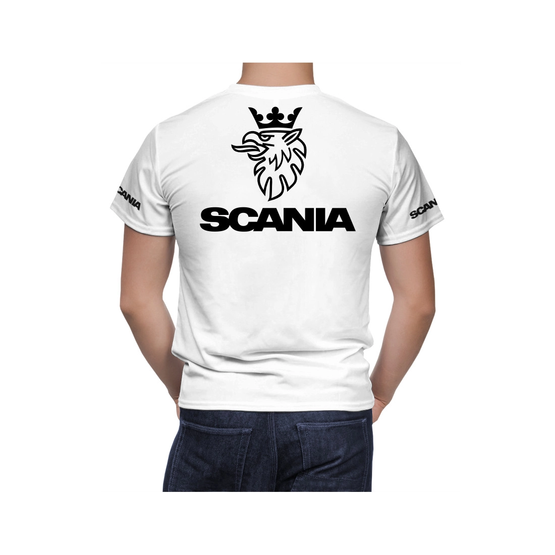 This is a Scania White hand made t-shirt.