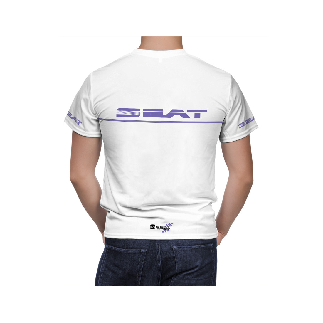 This is a Seat Sport White hand made t-shirt.