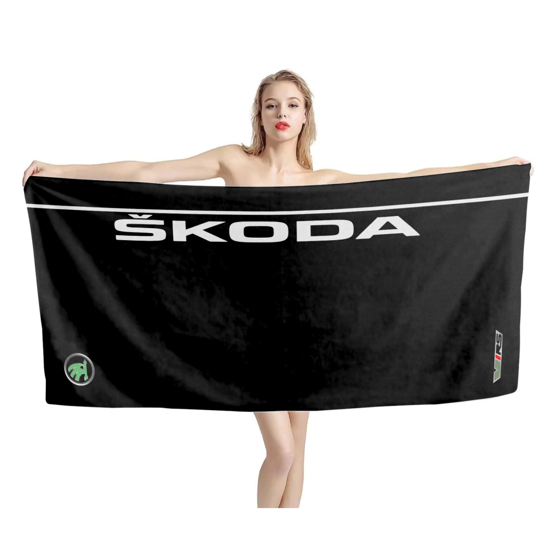 Get this unique and adorable Skoda Black Beach Towel. Printed design is edge-to-edge on fleece face in vibrant full-color with our unique printing process that is durable and won't fade or bleed! Our premium beach towel is printable on a single side only.