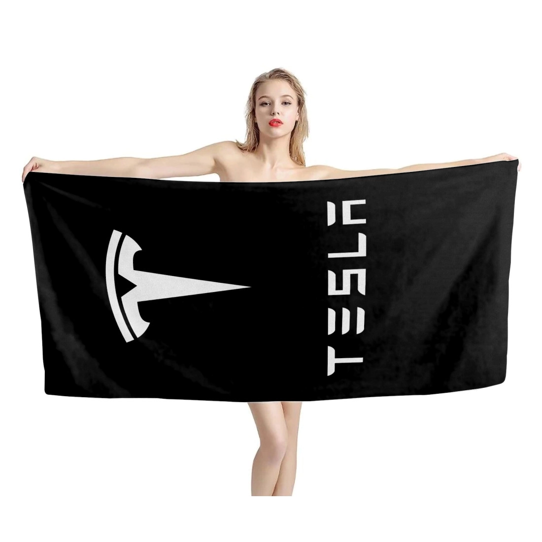 Tesla Logo Black Beach Towel